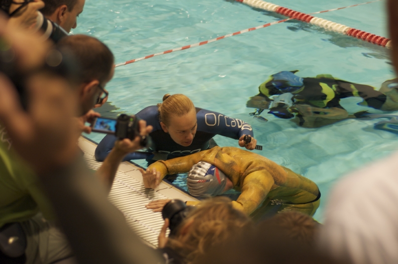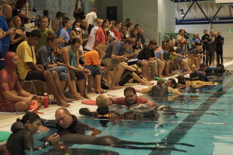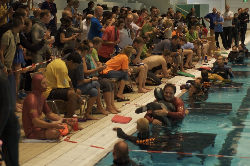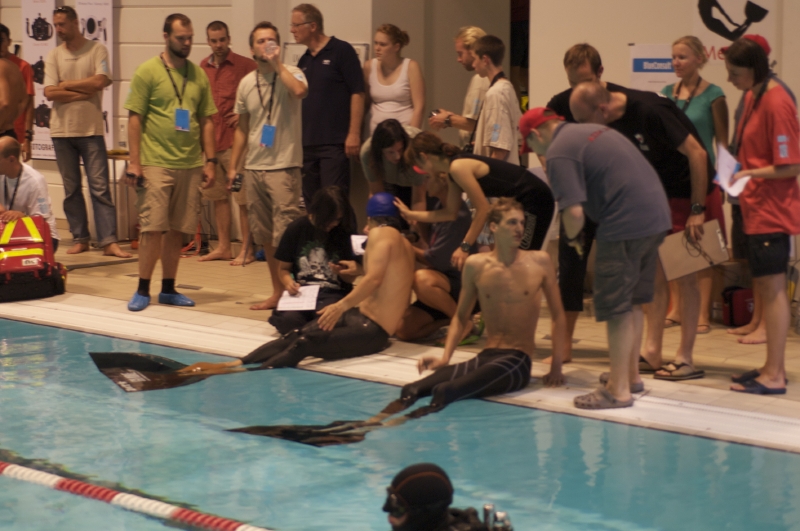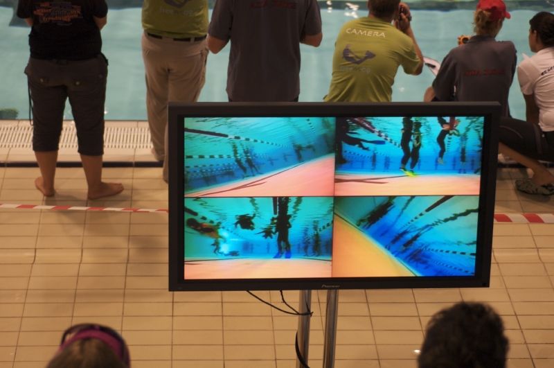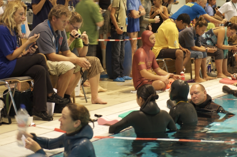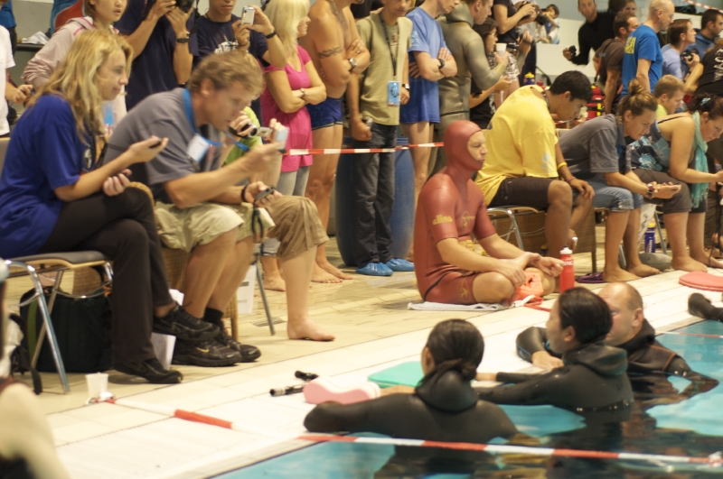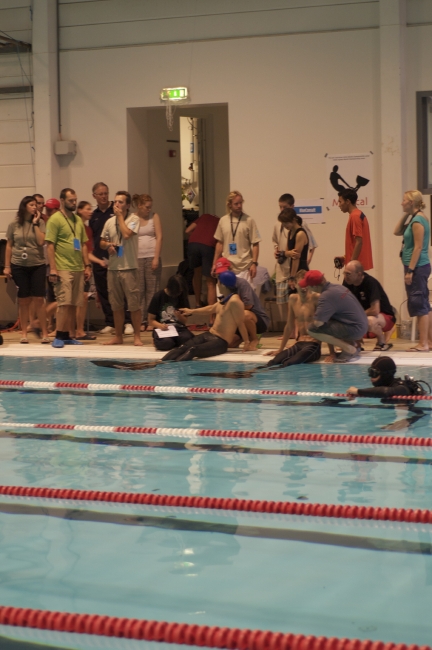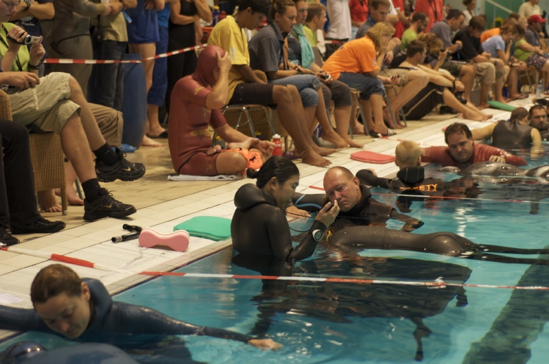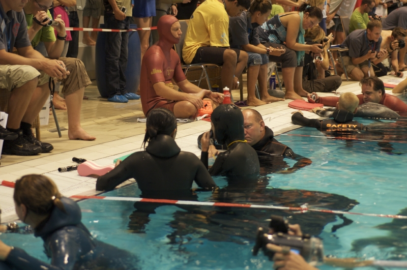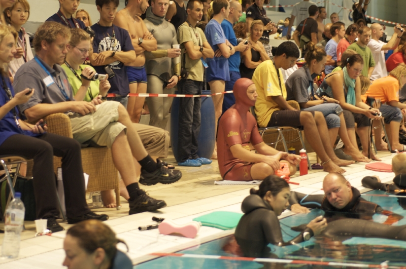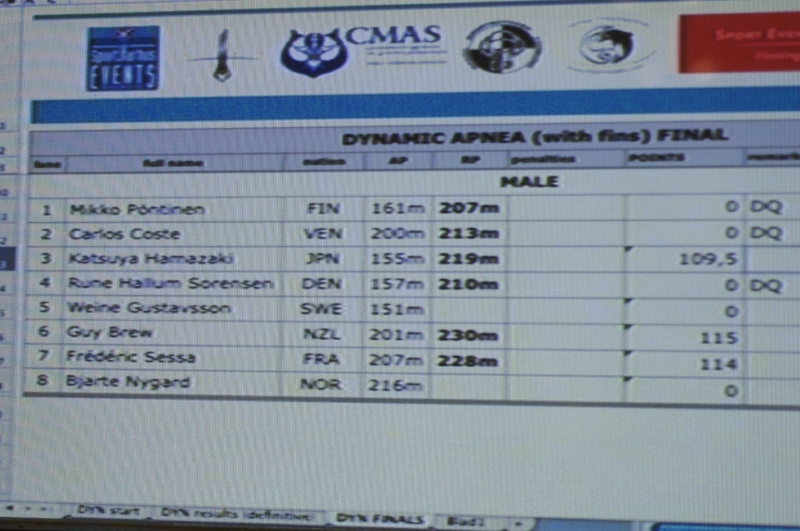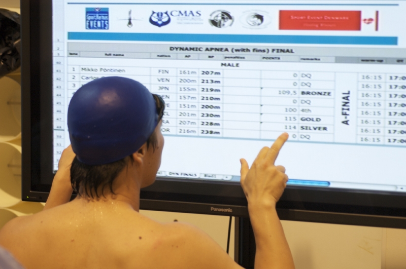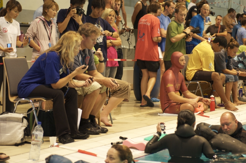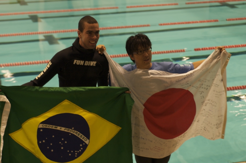 8/20 深夜にプールの機材が全て盗まれるアクシデントがありました。それでもオーガナイザーをはじめスタッフが団結して対応した結果、わずか1時間の遅れで無事に大会を運営していました。本当に素晴しいチームワークでした。 スタティックの予選とダイナミックウィズアウトフィンの決勝がありました。日本チームも健闘しています。 金田選手念願の7’00”達成おめでとう!平井選手、稲葉選手日本記録更新おめでとうございます! すごいぞ日本!