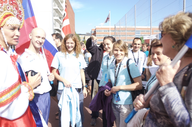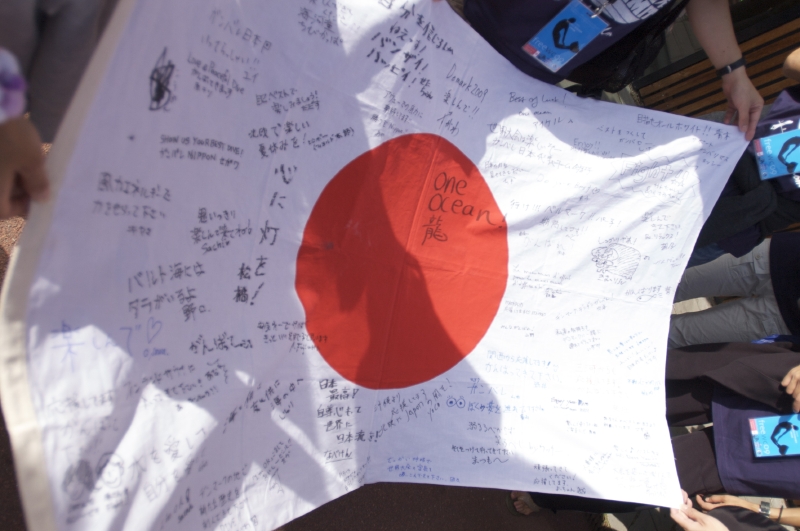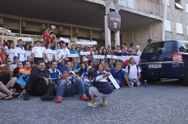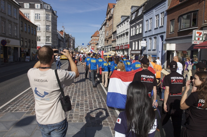 8/18 OpeningCeremony!いよいよ開幕です!選手全員でオーフスの街をパレードしました。 きっと一生忘れられないことでしょう!世界中のフリーダイバーと友達になっちゃいました。 日の丸にメッセージを寄せていただいたみなさま熱い思いをありがとうございます。 こちらのアイスはとてもおいしいです。Everybody can be happy when we exchange icecream!