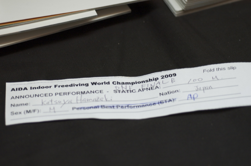 8/21 夕方よりダイナミックウィズフィンの予選が始まりました。廣瀬選手と平井選手の日本記録更新は素晴しかったです!いよいよ私の組のオフィシャルトップが近づいてきます。強気の176m申告は吉と出るのでしょうか!?あのロシアのナターリアやフランスのモーガンと同組です。夢の舞台へ真剣勝負!