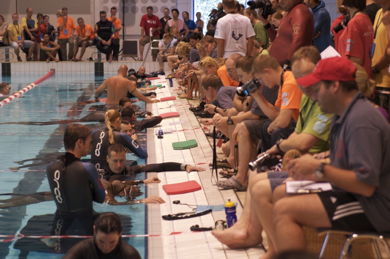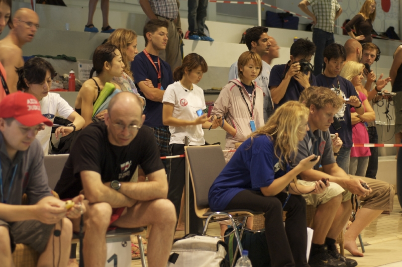 8/22 16:00〜いよいよダイナミックウィズフィンの決勝が始まります。会場のボルテージは徐々に高まり、選手はその空気の中で静かな闘志を燃やします。廣瀬選手はB決勝、平井選手と濱崎はA決勝に進出しました。前日の予選で3名とも日本記録を更新しています。最高の舞台で最高のパフォーマンスを引き出せるかどうか、己の限界に挑戦です!
